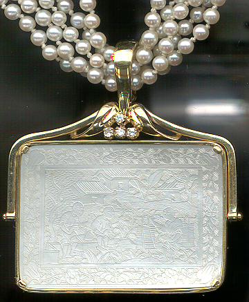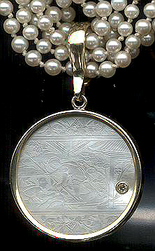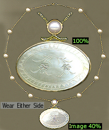 150% Oblong Heavy Carved Made Into Double Enhancer. Rev. Side Shown With 7 mm. Pearls |