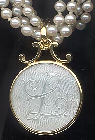 NEW ~ See A Few Sample Price Quotes And Designs http://www.motheropearl.com/14kQuotes.html New ~ Original Engraved Initials/Monograms Now Available on Pearl Gaming Counters See Full List: http://www.motheropearl.com/Initials.htm New ~ Add Gold Initials To The Empty Circles On M. of Pearl For Jewelry Designs in Various Types & Sizes ~ Great Gift Ideas http://www.motheropearl.com/GoldInitials.html New ~ Special Price Pearls ~ How To Wear One Length Over 20 Ways: http://www.motheropearl.com/pearls100.html |