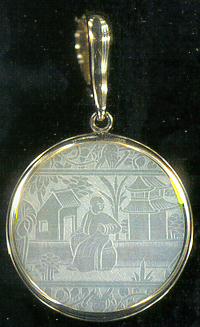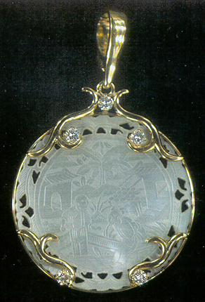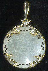 PAGE Have This Beautiful Filigree-Fret-Worked Round Counter Below Set In A Few VariousWays Also SeeThese: For Either Side Of Same Counter--Can Be Made Without The Diamond ..![]() HAVE THIS DESIGNED I4K HEIRLOOM JEWELRY SEE MOCK UP HERE WITH 3 DIAMONDS CLICK: http://www.motheropearl.com/Dia100FretArmorialSceneBird.jpg ![]() ![]() <-----SAMPLE