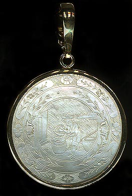 MINT NEW 14k Fancy Bezel Pendant s ~ Very Finely Engraved Floral Templar CREST ~ Partial c.1780 Pearl Gaming Counter Pendant. Click ReducedScan