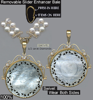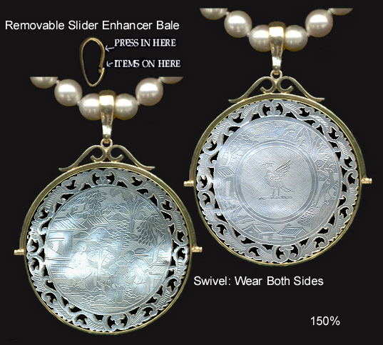 150% Oblong Heavy Carved Made Into Double Enhancer. Rev. Side Shown With 7 mm. Pearls |